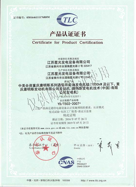 公司自1992年開(kāi)始,一直為“國(guó)家內(nèi)燃機(jī)發(fā)電機(jī)組質(zhì)量監(jiān)督檢驗(yàn)中心”檢驗(yàn)合格的發(fā)電機(jī)組制造廠(chǎng)商,通過(guò)ISO9001-2008質(zhì)量體系認(rèn)證,ISO1400:2004環(huán)境管理體系認(rèn)證,GBIT28001-2001職業(yè)健康安全管理體系認(rèn)證并并獲得自營(yíng)進(jìn)出口資格、信息產(chǎn)業(yè)部入網(wǎng)資格、廣電部入網(wǎng)資格、中石油入網(wǎng)資格、中國(guó)移動(dòng)入網(wǎng)資格、船用機(jī)組制造資格。了解更多